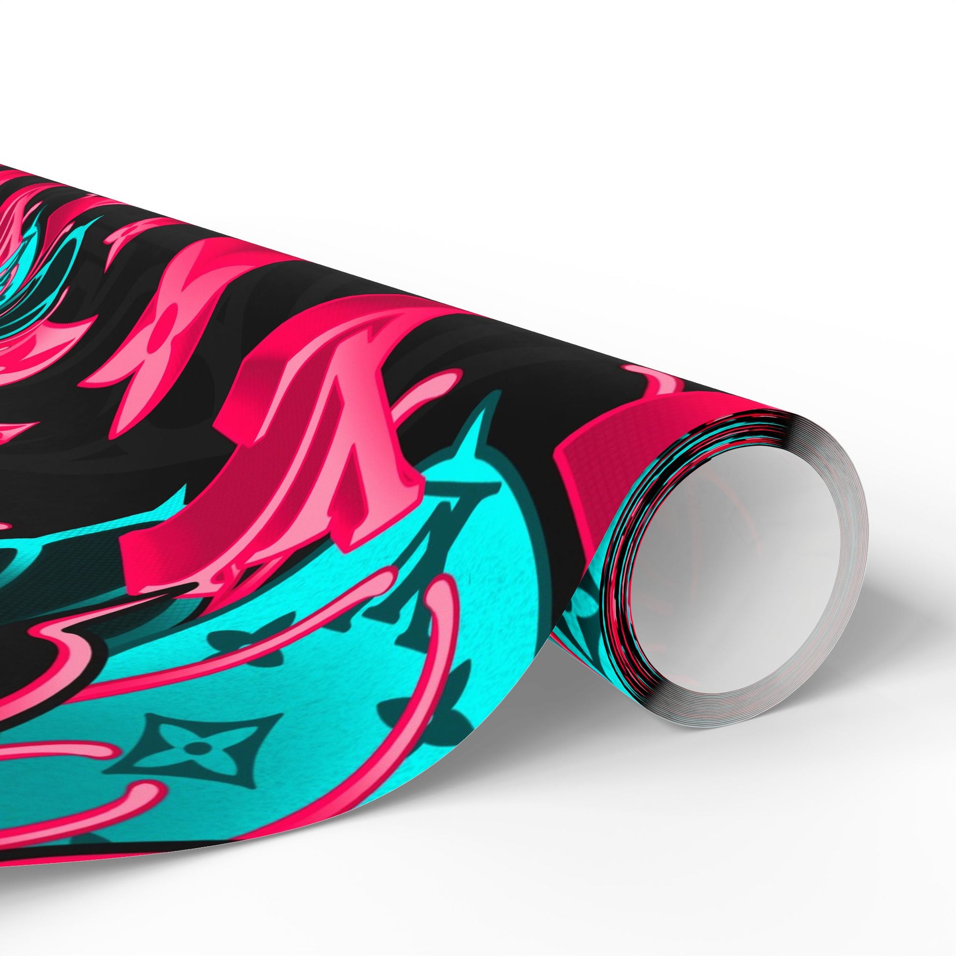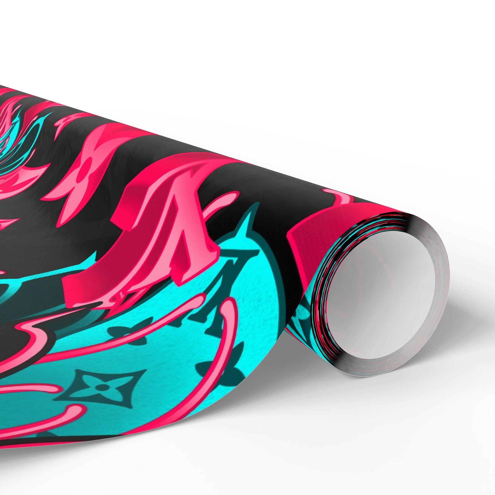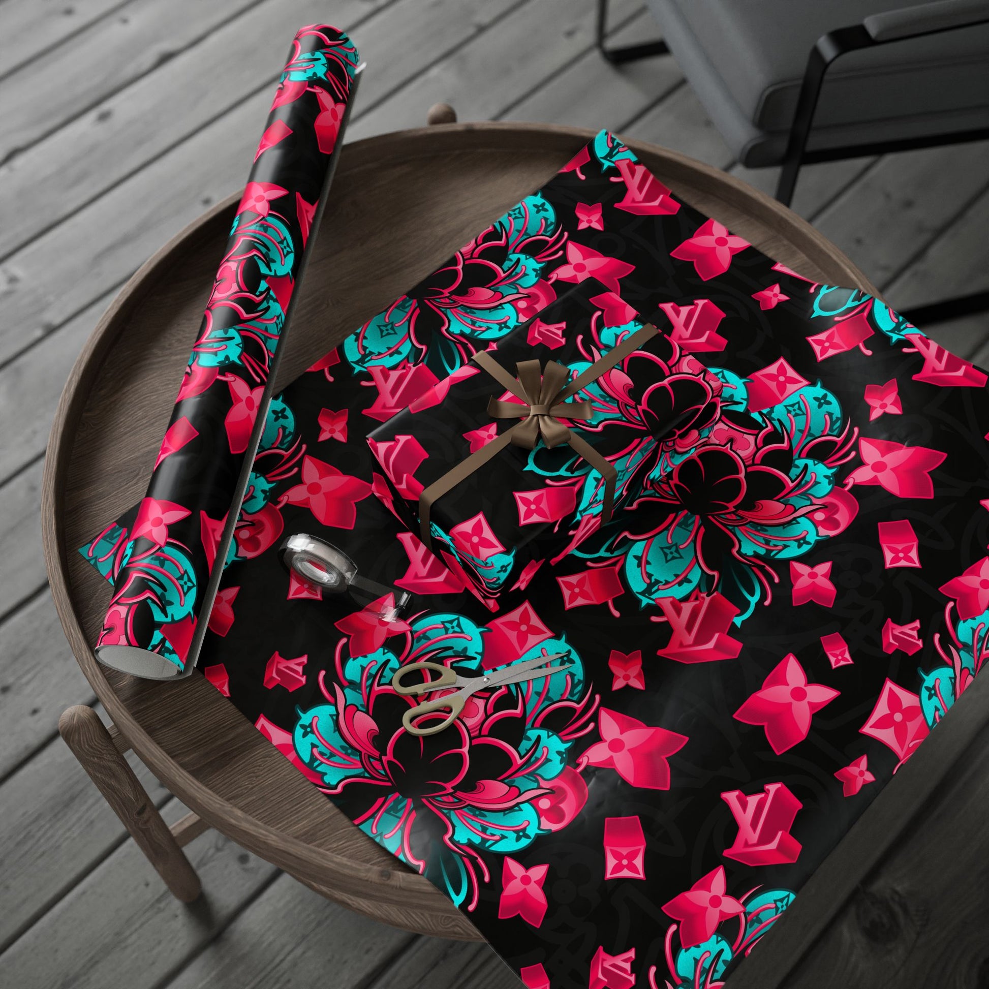 Bright, bold, and slightly mischievous — this geometric peony wrapping paper blends runway glamour with tattooed edge. Neon peonies and angular Louis Vuitton–inspired motifs march across the sheet in electric colors, giving holiday parcels a streetwise, art-gallery energy. It feels like unwrapping a secret: vintage couture references remixed by a tattoo artist’s steady hand. Use it when you want your gift to start a conversation before it’s opened — on holiday mornings, at late-night gift exchanges, or tucked beneath a tree for someone who loves fashion, ink, or unexpected color.